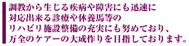 | ■グラスパドック 競走馬の馬体回復・リフレッシュ等が必要な場合にはグラスパドックが用意されております |
